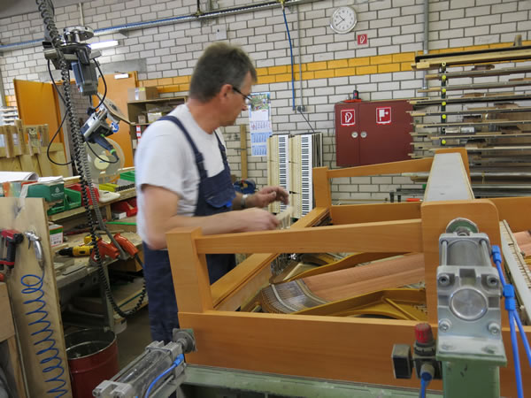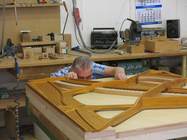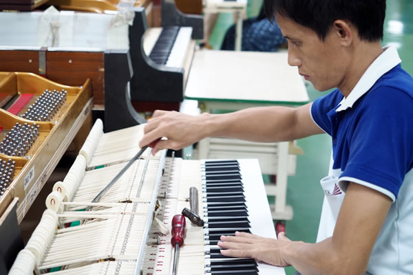 無(wu)論(lun)是在(zai)德國(guo)工(gong)(gong)廠還是在(zai)印度尼(ni)西(xi)亞工(gong)(gong)廠,共鳴盤和(he)箱體配件都(dou)經過仔細檢(jian)查和(he)小心安(an)裝(zhuang),確保所有規(gui)格(ge)(ge)符(fu)合精準的(de)公(gong)差(cha)。音(yin)板(ban)的(de)質(zhi)量分布(bu)和(he)肋木的(de)安(an)裝(zhuang)布(bu)局都(dou)經過嚴格(ge)(ge)的(de)質(zhi)量控(kong)制,以(yi)實現(xian)音(yin)板(ban)發聲的(de)一致性(xing)。在(zai)調(diao)律前,工(gong)(gong)匠會先對琴弦做(zuo)幾次拉(la)伸,確保獲得(de)最(zui)大的(de)音(yin)調(diao)穩定性(xing)。在(zai)將鋼琴運往經銷商之前,兩個工(gong)(gong)廠和(he)賽樂爾三益樂器經驗豐富(fu)的(de)賽樂爾技師們,都(dou)會仔細校準弦槌、調(diao)聲、檢(jian)查琴鍵負荷和(he)觸感。