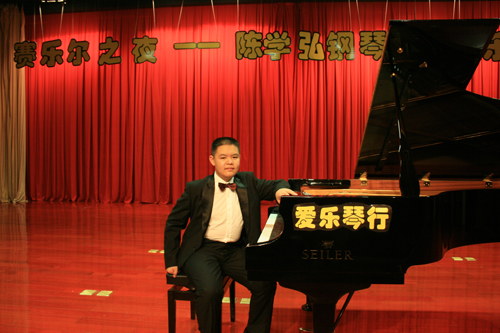 2013年10月4日晚,由賽樂爾三益(上海)有限公司主辦,安徽阜陽愛樂琴行承辦的賽樂爾之夜——陳學弘鋼琴獨奏音樂會在安徽省阜陽市天筑豪生大酒店隆重舉行,給阜陽市的幾百名琴童及家長帶來了一場聽覺盛宴,幾百人的演奏廳座無虛席,演奏會所用的賽樂爾三角琴音色純凈、圓潤、飽滿,手感細膩,得到了小演奏家的絕口稱贊,陳學弘的精彩演奏令在場觀眾的掌聲連連、喝彩不斷。 作為全球最大的德國獨資鋼琴制造廠之一,賽樂爾被公認為歐洲鋼琴生產領域的權威,純正德國制造,完美的選材、珍貴的材質,靈動的音色,賦予了鋼琴生命和靈魂,領航國際鋼琴界向著更完美、更高端化發展。 陳學弘簡歷:甘肅永昌人,1999年生,現就讀于中央音樂學院附中,師從張欣寧教授,2010年起先后在國家大劇院、中山音樂堂、新疆人民大會堂、俄羅斯肖斯塔科維奇音樂廳演出,在北京、昆明、廈門、金昌、威海等多地成功舉辦個人獨奏音樂會。 2009年第三屆“卡丹薩杯”全國青少年鋼琴比賽兒童組第一名; 2010年第十三屆“星海杯”全國少年兒童鋼琴比賽專業三組第二名; 第二屆“英昌杯”全國青少年鋼琴比賽兒童組第一名; 2011年第八屆俄羅斯“通往大師之路”國際青少年鋼琴比賽第一名; 第四屆“卡丹薩杯”全國青少年鋼琴比賽專業兒童組第一名; 2011CCTV鋼琴小提琴大賽鋼琴青少年組金獎;、 2012年第七屆柴可夫斯基國際青少年音樂比賽(鋼琴)第四名及評委會特別獎; 文華藝術院校獎(文化部)第二屆全國青少年鋼琴比賽少年組第一名; 第十四屆“星海杯”全國少年兒童鋼琴比賽專業三組第一名; 2013年第十屆霍洛維茲國際青少年鋼琴比賽金獎和烏克蘭作品最佳演奏獎 2013全球華人微博鋼琴大賽少年A組第一名 第八屆“北京國際音樂大師班夏令營”協奏曲比賽第一名