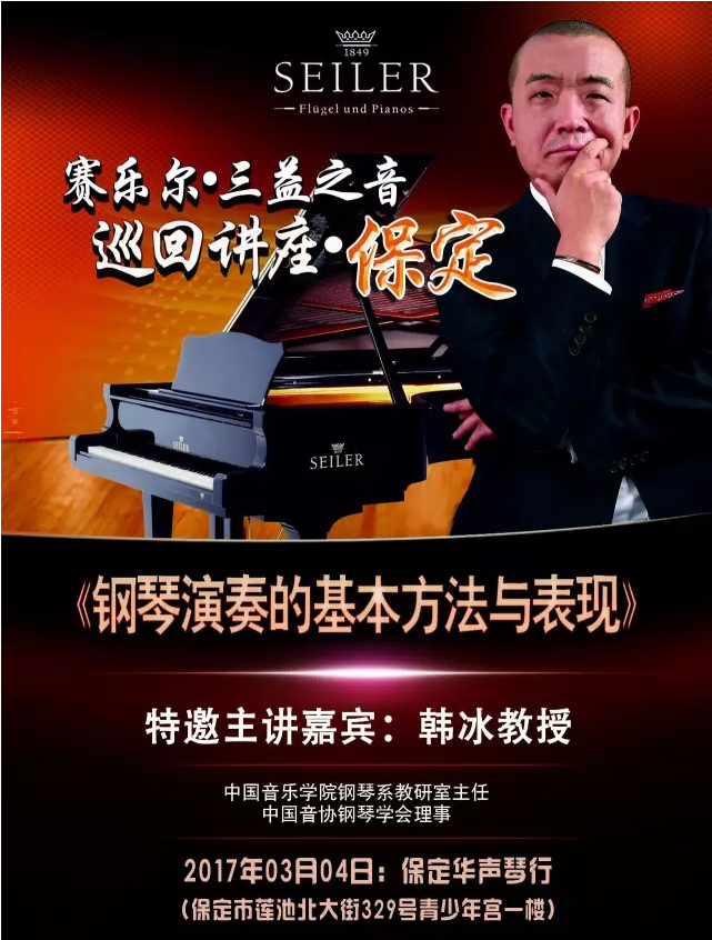 2017年3月4日,賽樂爾·三益之音巡回講(jiang)(jiang)座(zuo)之課(ke)題:《鋼(gang)琴演奏的基本方法(fa)與表(biao)現》于河北保定隆重舉行(xing),本期講(jiang)(jiang)座(zuo)主講(jiang)(jiang)嘉(jia)賓是來自中國(guo)音樂(le)學(xue)院鋼琴系(xi)教研室主任(ren)、中國(guo)音樂(le)家協會鋼琴學(xue)會理事韓冰老師,課題內容豐富(fu)充實,深(shen)受保定老(lao)師們的認可和贊(zan)揚(yang),并表(biao)示受益匪(fei)淺。