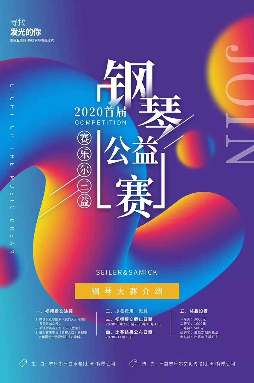 為了促進音樂(le)文化及互聯(lian)網(wang)建設,提高音樂(le)愛好者學習鋼琴的(de)(de)(de)素質(zhi),豐富青少年的(de)(de)(de)音樂(le)生活并充分發(fa)(fa)揮科技(ji)創新對音樂(le)文化發(fa)(fa)展(zhan)的(de)(de)(de)重要引擎(qing)作用(yong),同時(shi)也為了更(geng)好的(de)(de)(de)抗擊疫(yi)情,賽(sai)(sai)樂(le)爾三益(yi)樂(le)器(上海)有限公(gong)(gong)司推(tui)出“2020首屆賽(sai)(sai)樂(le)爾·三益(yi)鋼琴公(gong)(gong)益(yi)大賽(sai)(sai)”。本賽(sai)(sai)事為公(gong)(gong)益(yi)性(xing)(xing)質(zhi),不以任何(he)形式收取任何(he)費用(yong);采用(yong)互聯(lian)網(wang)+傳統鋼琴表演形式,以專業性(xing)(xing)、創新性(xing)(xing)、全(quan)國(guo)性(xing)(xing)為活動特色;擁有豪華評委(wei)陣容(rong),借助網(wang)絡工具(ju)(ju)全(quan)國(guo)性(xing)(xing)覆蓋,充分展(zhan)示中(zhong)國(guo)鋼琴藝(yi)術(shu)的(de)(de)(de)教學成果,展(zhan)現中(zhong)國(guo)文化正能量與創新影響(xiang)力(li)(li);更(geng)大范圍、更(geng)大程度、更(geng)具(ju)(ju)影響(xiang)力(li)(li)地展(zhan)示鋼琴藝(yi)術(shu)成果,對中(zhong)國(guo)的(de)(de)(de)鋼琴藝(yi)術(shu)發(fa)(fa)展(zhan)起到強大的(de)(de)(de)創新和推(tui)動作用(yong)。