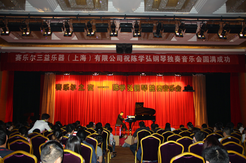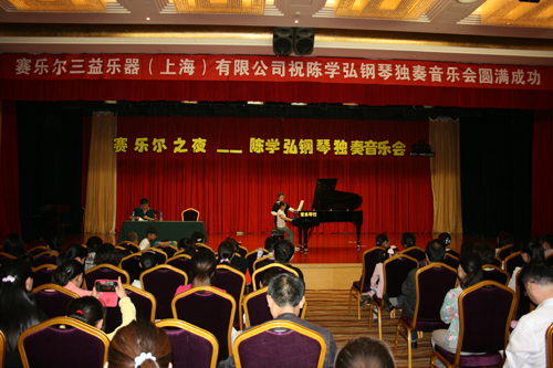 2013年10月4日晚,由賽樂爾三益(上海)有限公司主辦,安徽阜陽愛樂琴行承辦的賽樂爾之夜——陳學弘鋼琴獨奏音樂會在安徽省阜陽市天筑豪生大酒店隆重舉行,給阜陽市的幾百名琴童及家長帶來了一場聽覺盛宴,幾百人的演奏廳座無虛席,演奏會所用的賽樂爾三角琴音色純凈、圓潤、飽滿,手感細膩,得到了小演奏家的絕口稱贊,陳學弘的精彩演奏令在場觀眾的掌聲連連、喝彩不斷。 作為全球最大的德國獨資鋼琴制造廠之一,賽樂爾被公認為歐洲鋼琴生產領域的權威,純正德國制造,完美的選材、珍貴的材質,靈動的音色,賦予了鋼琴生命和靈魂,領航國際鋼琴界向著更完美、更高端化發展。 陳學弘簡歷:甘肅永昌人,1999年生,現就讀于中央音樂學院附中,師從張欣寧教授,2010年起先后在國家大劇院、中山音樂堂、新疆人民大會堂、俄羅斯肖斯塔科維奇音樂廳演出,在北京、昆明、廈門、金昌、威海等多地成功舉辦個人獨奏音樂會。 2009年第三屆“卡丹薩杯”全國青少年鋼琴比賽兒童組第一名; 2010年第十三屆“星海杯”全國少年兒童鋼琴比賽專業三組第二名; 第二屆“英昌杯”全國青少年鋼琴比賽兒童組第一名; 2011年第八屆俄羅斯“通往大師之路”國際青少年鋼琴比賽第一名; 第四屆“卡丹薩杯”全國青少年鋼琴比賽專業兒童組第一名; 2011CCTV鋼琴小提琴大賽鋼琴青少年組金獎;、 2012年第七屆柴可夫斯基國際青少年音樂比賽(鋼琴)第四名及評委會特別獎; 文華藝術院校獎(文化部)第二屆全國青少年鋼琴比賽少年組第一名; 第十四屆“星海杯”全國少年兒童鋼琴比賽專業三組第一名; 2013年第十屆霍洛維茲國際青少年鋼琴比賽金獎和烏克蘭作品最佳演奏獎 2013全球華人微博鋼琴大賽少年A組第一名 第八屆“北京國際音樂大師班夏令營”協奏曲比賽第一名