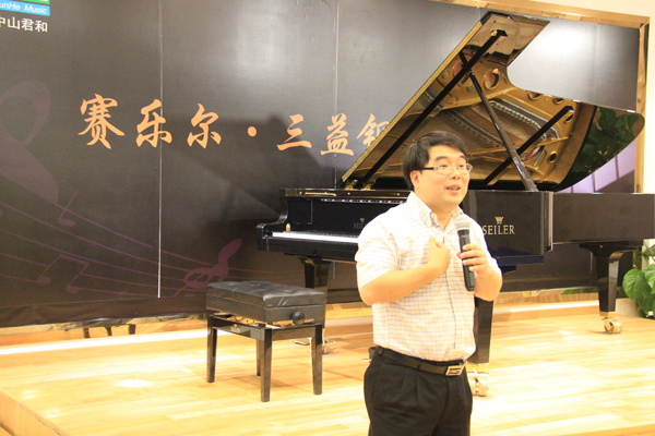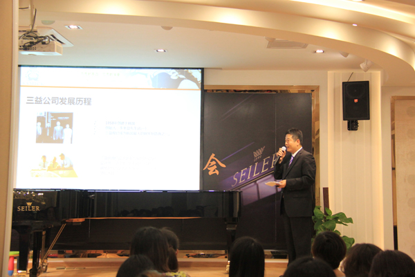 當天下午,由中山君和與賽(sai)樂爾三(san)益樂器(qi)(上海)有限公司(si)聯合舉辦了(le)(le)產(chan)品(pin)推(tui)介會(hui),會(hui)上三(san)益樂器(qi)董事長(chang)李炯(jiong)國先生(sheng)出席了(le)(le)會(hui)議(yi),向到場(chang)的廣大老師朋(peng)友們致(zhi)辭,感謝大家(jia)對(dui)三(san)益鋼琴一如既往的厚(hou)愛與支持(chi)。本次推(tui)介會(hui)主要介紹了(le)(le)三(san)益公司(si)的兩(liang)個主要品(pin)牌,賽(sai)樂爾和三(san)益鋼琴,并對(dui)其的生(sheng)產(chan)基地(di)及產(chan)品(pin)優勢做了(le)(le)詳細的介紹,通過此次推(tui)薦會(hui),讓大家(jia)對(dui)三(san)益公司(si)及鋼琴品(pin)牌有了(le)(le)更(geng)深入(ru)的了(le)(le)解和新(xin)的認(ren)識,并表現(xian)出極大的興趣。